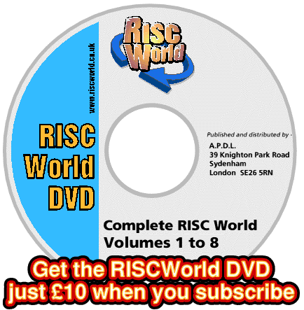 DVD subscription offer £34.90 UK (£37.50 overseas) - save £14.90!A years collection of six RISCWorld CDs for £34.90 in the UK and £37.50 overseas, plus the latest version of the RISCWorld DVD. ![]() The Complete RISCWorld DVD