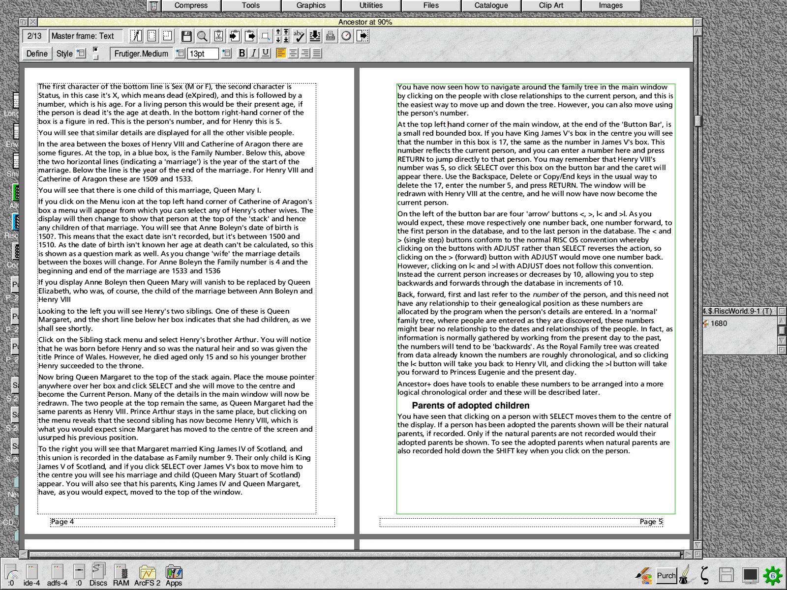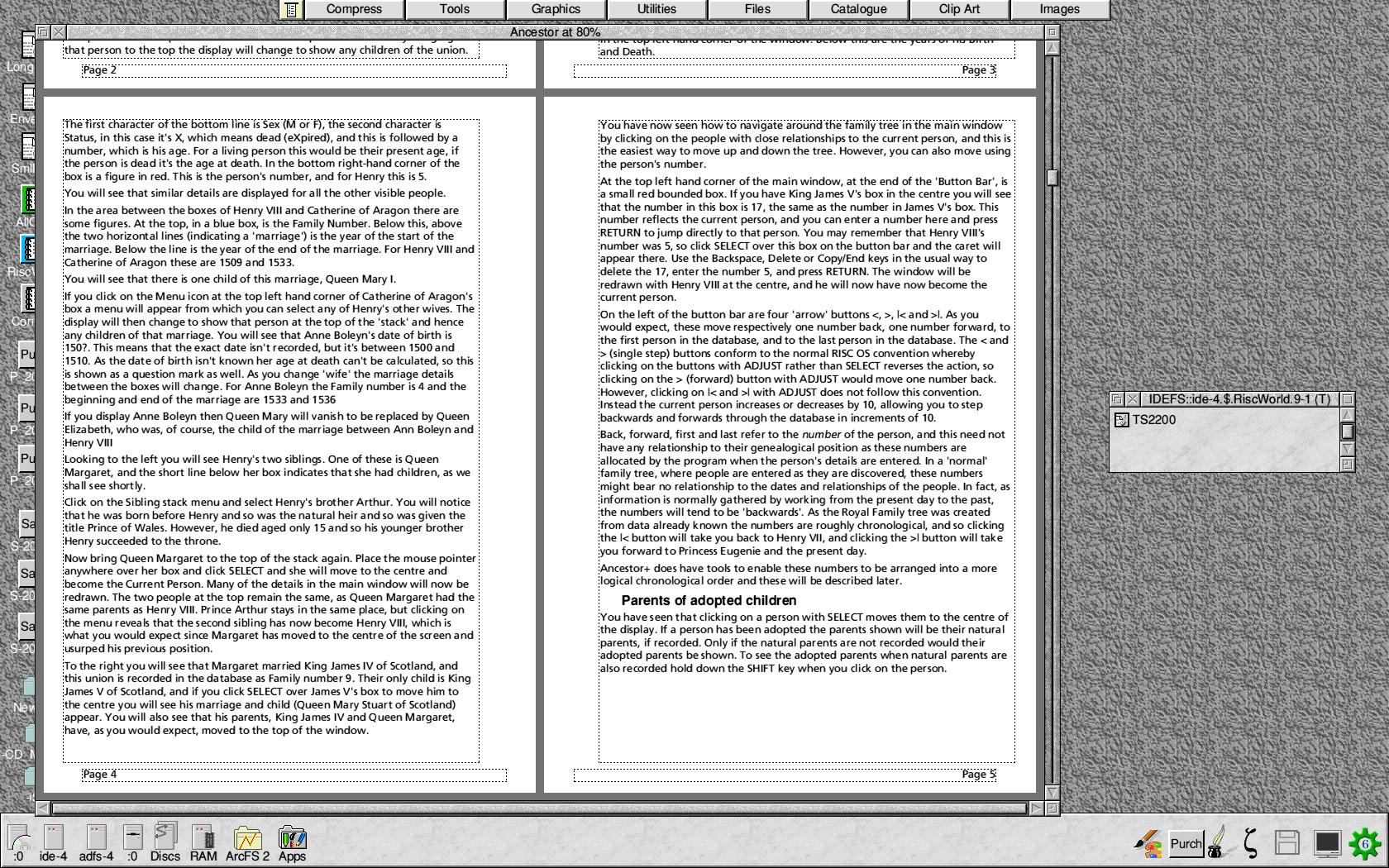![]() Also very useful are the built-in speakers. Admittedly these aren't particularly brilliant but, for me, a plus point is that they're actually on the back of the monitor so they don't increase the overall size. For someone who uses their computer to play music, which is something I don't do, these speakers probably wouldn't be good enough, but for me they're fine as they take up no space and enable me to use the KVM switch (which can also switch audio) to route sound to the speakers from whatever machine controls the screen display. I was anticipating problems since all the MDFs I had to hand were 'normal' 4:3 type, rather than the 16:9 aspect ratio of the new monitor. There was only one way to find out, so I plugged it in to my RiscPC with the same MDF I used for the Dell monitor and switched on. To my surprise I ended up with a perfectly centered and sized 1600 x 1200 desktop which, despite not being the 'natural' size of the panel, was remarkably clear. I tried the other main standard screen sizes, 1280 x 1024, 1024 x 768, 800 x 600, and, apart from the need to bring up the menu and select 'Auto' the first time I used 1024 x 768 (it was about 1 inch too narrow but resized itself without problems) they all worked perfectly. As the screen dimensions weren't correct for these 4:3 screen modes everything was a bit distorted, but it seems the electronics in the monitor were designed to give the best possible extrapolation with these modes since the picture was always very clear and usable. The next step was to add a 1680 x 1050 definition to my MDF. When this was done I could see the monitor working in its natural screen resolution. Once again it went without hitch and the monitor correctly centered and sized the screen. I then tried it with the A9 and Iyonix using the modified MDF. Again there were absolutely no problems. So far it had all gone with surprisingly little hassle. The only remaining thing to try was how well it worked without Viewfinder. It took a bit of 'tweaking' with !MakeModes to get a suitable 1680 x 1050 mode but once this was done I found the monitor worked perfectly in 256 colours at this resolution with 2 MB of VRAM. I'd deliberately reduced the frequency to 56 Hz to see if that would work OK since I know that some RiscPCs have problems with high bandwidth screen modes but even at 56 Hz the display was clear and solid. Of course, most RiscPCs would have no difficulty in running a 1680 x 1050 screen at 60 Hz, which is the standard frequency for TFT monitors. In order to use 32,000 colours without a Viewfinder you would need to drop the screen resolution to 1024 x 768. This is the largest standard screen resolution that permits 16 bpp. but it would, of course, be possible to create a larger screen mode, say 1248 x 780. I haven't tried this but experimenting with a couple of other 'odd sized' screen modes that I had to hand wasn't too successful. There was no problem getting a good, solid display, but in each case there was some vertical banding. This is quite common with TFT monitors when used with screen resolutions outside their natural size and where there is no inbuilt compensation in the monitor's firmware to balance this as there is with the more common sizes. While I had the Viewfinder disconnected I tried it with a few older games, since many of these don't like the Viewfinder. The monitor seemed willing to display the low res screens used by the games, the only problem was that the widescreen format exaggerates the 'letterbox' effect. All LCD monitors exhibit this effect, but obviously it's more pronounced on a widescreen display than a 4:3 screen. For a serious games player this could be improved by customising the required screen modes or there are utilities that can double each horizontal line thereby doubling the height of the display. In conclusionI've been using this monitor for several days now and I'm definitely sold on the 'widescreen' format. The biggest advantage is that when editing a document there's more unused desktop for directory displays, other documents etc. The two pictures below illustrate this. In either case click on the picture to see it full size. As you can see with the document sized to fit the vertical confines of the 'working' area of the desktop the 1680 x 1050 screen gives a lot more unused space for other things. Since I don't do a lot of graphics work I can't offer a definitive opinion on the colour reproduction. However colours do seem very good with the graphics files I've looked at, although for the serious user some fiddling with the colour balance on the monitor's menu would probably be required. The display is uniformly bright and even over a wide viewing angle; it doesn't exhibit the darkening when viewed off centre of some TFT monitors. All in all a very worthwhile purchase, even if I hadn't been able to buy it at the special offer price. The most gratifying thing is that it demonstrates that, even without a Viewfinder, a RiscPC can still use a modern low cost TFT widescreen monitor. This is an important consideration when so many RiscPC users now have a PC as well and use a common monitor for the two machines via a KVM switch. I have included the 1680 x 1050 resolutions as an MDF in the software directory, so that anyone else who is considering this size of monitor will not have to do the same messing around as I had to. Product details