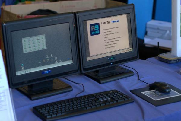 RISCOS Ltd. were selling Window Manager PRMs and subscriptions for Select (currently RISC OS 6.10). It was also possible to get hands on experience with the latest released features of 6.10 and also some future features. Previewing on the stand were 3 short videos, similar to those released with 6.10. There was a new 64 thousand colour mode, that operates in the same amount of VRAM as 32 thousand. Improved Alpha support for Paint, and a new colour picker with CIELab colour model. Also on the RISCOS Ltd. stand was the Dual-Head video A9Wail computer showing the developments towards RISC OS 6 on the A9 platform.